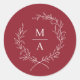 Rustic Red Simple Elegant Laurel Wreath Monogram Runder Aufkleber