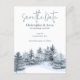 Save the date card with watercolor pine trees is versatile for rustic wedding stationery. Slate gray forest trees are ideal for winter wedding themes. Pair with other outdoorsy pine needle wedding stationary in this collection.
