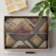 Warm geometric stripe pattern tissue paper featuring tribal-inspired diamonds, zigzags, and textured vertical bands in earthy brown, terracotta, tan, beige, and charcoal tones. A cozy boho design ideal for southwestern décor lovers, rustic style fans, and anyone drawn to earthy, handcrafted aesthetics.