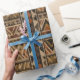 Warm geometric stripe pattern wrapping paper featuring tribal-inspired diamonds, zigzags, and textured vertical bands in earthy brown, terracotta, tan, beige, and charcoal tones. A cozy boho design ideal for southwestern décor lovers, rustic style fans, and anyone drawn to earthy, handcrafted aesthetics.