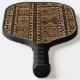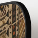 Warm geometric stripe pattern pickleball paddle featuring tribal-inspired diamonds, zigzags, and textured vertical bands in earthy brown, terracotta, tan, beige, and charcoal tones. A cozy boho design ideal for southwestern décor lovers, rustic style fans, and anyone drawn to earthy, handcrafted aesthetics.