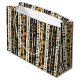 Warm geometric stripe pattern gift bag featuring tribal-inspired diamonds, zigzags, and textured vertical bands in earthy brown, terracotta, tan, beige, and charcoal tones. A cozy boho design ideal for southwestern décor lovers, rustic style fans, and anyone drawn to earthy, handcrafted aesthetics.