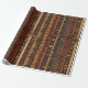 Warm geometric stripe pattern wrapping paper featuring tribal-inspired diamonds, zigzags, and textured vertical bands in earthy brown, terracotta, tan, beige, and charcoal tones. A cozy boho design ideal for southwestern décor lovers, rustic style fans, and anyone drawn to earthy, handcrafted aesthetics.
