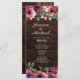 Bois rustique avec lampes à cordes et menu de réception de mariage floral à l'aquarelle bordeaux. Idéal pour les mariages de la campagne ou de la grange. Contactez-nous pour obtenir de l'aide sur la personnalisation ou la mise en correspondance de produits.