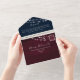 Feiern Sie Ihre Liebe mit unserer romantischen marineblauen und bordeauxroten Hochzeitseinladung, die den Charme des Landes und die böhmische Eleganz perfekt vereint. Dieses rustikal inspiriert Design zeichnet sich durch ein personalisiertes Monogramm oben aus, bohelle Aquarellfarben-Blume in einem Maurerglas und das warme Glühen von zwirnenden Saitenlichtern. Zwei hochgeschätzte Fotos des Ehepaares fügen eine persönliche Touch hinzu, was diese Einladung zu einem schönen Sake macht. Ideal für rustikale, boho- oder landschaftliche Hochzeiten, ist diese Öko-freundliche All-in-One-Einladung leicht zu personalisieren mit Ihren Fotos, Hochzeitsdetails und UAWG Informationen. Entworfen für Paare, die Stil und Nachhaltigkeit schätzen. Wichtig: Diese Öko-freundliche All-in-One-Einladung erfordert einen separaten Briefumschlag.
