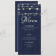 Rustic String Lights Navy Blue Wood Wedding Menükarte