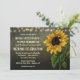 Rustic String Lights Sunflower Wedding Invitations - présente un arrière - plan rustique avec des lampes à cordes et un tournesol. Le texte présente une sculpture rustique comme une police pour les noms et la célébration mariage.