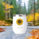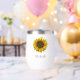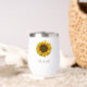 Boho botanical Yellow Sunflower bloom tumbler, with customizable script typography. Enjoy this personalized accessory item for everyday use or as a gift for someone special.