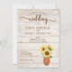 Rustic Sunflower Floral on Wood Wedding Invitation