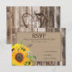 Sonnenblumen Blumenstrauß über Leinen-Look Hintergrund und Stallholzplanken rustikalen Western Hochzeit RSVP-Karte Design.