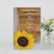 Customisez le joli menu Rustic Sunflower and Veil Mariage campagnard avec les détails du repas que vous pourrez servir à votre déjeuner de douche nuptiale décontracté mais classe, dîner de répétition ou réception matrimoniale lorsque vous ajoutez la salade ou le premier plat, entrée ou deuxième plat et dessert ou troisième plat. Ce charmant menu mariage de style ranch personnalisé présente une photo florale pittoresque d'une fleur de tournesol jaune et un voile de mariée blanc avec un arrière - plan en bois de grange patiné brun. Idéal pour une visite ou une idée pour un événement informel de fête de grange.
