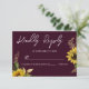 Rustikale Sonnenblumen Hochzeitskarten RSVP. Imitate Goldfolie Blätter. Skript-Schriftart-Highlights mit leicht lesbaren Serifennamen Schriftart. Leicht an Ihre Hochzeitsbedürfnisse anzupassen. Einfach zu personalisieren.