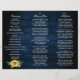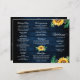 Das elegante und moderne rustikale Hochzeitsprogramm mit dreifach gefliester Sonnenblumenblüte und einem Blumenrahmen aus Zigeuneratmen und Zigeunerblüten mit Blätter auf marinebasischem Stallholzhintergrund. Weitere passende Designs und Variationen finden Sie in meinem "Blitzweddingpaperie" Shop. Und zögern Sie nicht, mich für weitere Anpassungen oder Match-Artikel zu kontaktieren.
