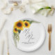 Fügen Sie diese personalisierten Hochzeitszettel-Teller zu Ihrer Feier hinzu. Das Design ist mit dem eleganten Skripttext "Mr. and Mrs." ausgestattet und mit einer Sonnenblumengrafik versehen. Dieser Teller ist perfekt für einen Herbsttag Hochzeitsfeier Empfang.