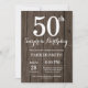 Invitation Rustic Surprise 50e anniversaire. Arrière - plan en bois rustique. Anniversaire Vintage de Retro. Anniversaire adulte. Hommes ou femmes Anniversaire Invitation. 13e 15e 16e 18e 20e 21e 30e 40e 50e 60e 70e 80e 90e 100e, n'importe quel âge.