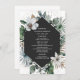 Le thème rustique de la plage est composé de feuilles de palmiers et de fleurs blanches, dans un style géométrique gris foncé.
