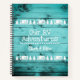 Carnet de journal de camper RV - Un beau cadeau de camping en bois turquoise rustique pour les couples retraités RV et les campeurs Rv. Lit 'Our RV Adventures' en look manuscrit, en lettres blanches. En dessous se trouve le nom personnalisé du couple ou de la famille. Avec une bordure blanche mignonne en haut et en bas des rangées de camping-cars vintages et de pins. Contre un turquoise turquoise arrière - plan de planches en bois rustiques et en mauvais état avec des noeuds. Un cadeau de retraite amusant pour maman et papa qui aiment faire des voyages sur la route. Important : Toutes les images sont imprimées. Pas du bois réel. Plaira à de nombreux goûts et styles différents. Visitez notre boutique en ligne Zazzle.com/angela65 pour trouver la décoration à thème RV correspondante et plus de cadeaux de bureau et de cahiers uniques.