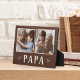 Das hübsche Holzschild zum Vatertag, Geburtstag oder Großelterntag zeigt zwei Fotos nebeneinander auf einem rustikalen Hintergrund mit "Papa" unten.