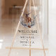 Amaze your guests with this elegant wedding welcome sign featuring a beautiful deer and rustic leaves with modern typography.