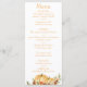 Lass deinen Gästen, was auf der Speisekarte für deinen Hochzeitsempfang steht, und verwende diese Rustic Watercolor Pumpkin Rücksendeadresse Wedding Themenmenu, Schriftart Color Orange.