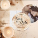 Einladung zu unserem rustikalen Hochzeitssemble "Wood Grain Save the Date", das auf das Wesentliche Ihres rustikalen Hochzeitstils ausgerichtet ist. Diese runde Karte wird durch die Schönheit des Holzkorns inspiriert, erinnert an die romantische Atmosphäre, die man bei rustikalen Hochzeiten findet. Passen Sie diese Einladung mit den Namen der Braut und des Bräutigams, dem Hochzeitstag und dem Ort an, um sie zu Ihrem einzigartigen Ort zu machen. Sie können auch Ihre Hochzeitswebsite einbinden, sodass Ihre Gäste leicht auf wichtige Details zugreifen können und über Ihre Hochzeitspläne bleibe werden können. Wenn eine Hochzeitswebsite nicht anwendbar ist, haben Sie die Möglichkeit, sie zu löschen. Die Einladung bietet die perfekte Gelegenheit, Ihr Lieblings-Foto zu präsentieren, eine persönliche Touch zu schaffen und einen bleibenden Eindruck zu hinterlassen. Wählen Sie ein Foto, das Ihre Liebe und den Geist Ihrer bevorstehenden Hochzeitsfeier verkörpert. Das Design zeichnet sich durch ein Holzkornmuster aus, das die rustikale und natürliche Ästhetik verstärkt. Dieses Element verleiht der Gesamteinladung eine Touch von Wärme und Charme, die den Ton für Ihr rustikales Hochzeitsthema abgibt. Wenden Sie sich an info@lddesignloft.com, wenn Sie Hilfe benötigen.