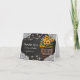 Stilvolle Country danke Karten mit einem rustikalen schwarzen Kalkboard Hintergrund, Bridal Spitzen Ecke Dekoration, Saiten Tinkle Lichter, Sommer goldgelbe Sonnenblumen, ein Weinkeller Holzfass mit Ihren Initialen und ein Stück geknüpfte Kette.
