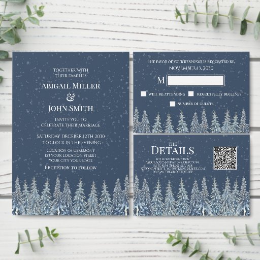 Blue Rustic Winter Forest WeddingDesignt von Dreaming Mind Cards