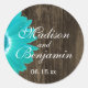 Rustic Wood Aquamarin Daisy Gastgeschenk Hochzeit Runder Aufkleber