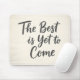 Start every workday with a boost of optimism with "The Best is Yet to Come" mouse pad. This design features a stylish, dark grey handwritten script set against a creamy, light-washed wood texture for a clean and rustic look. The neutral color palette ensures it complements any desk setup, from professional corporate environments to cozy home offices. It’s an ideal gift for graduation, a new career milestone, or anyone who appreciates a daily reminder of hope and future success. Durable and visually pleasing, this accessory adds a touch of modern farmhouse charm to your workspace.