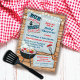 Rustikale "Brötchen im Ofen & Burger auf dem Grill" Grillen Baby Dusche Einladungen. Auf einem rustikalen Barnholzboden finden Sie einen Grillplatz, eine Lampe und ein altes Papier. Ideal für eine Babydusche im Freien oder im Garten.