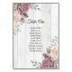 Diese elegante Tischnummer mit Rose in Aquarelltönen in staubigen Rose auf weißem Holzboden. Dies ist Teil einer passenden Hochzeitssuite, die vollständig personalisiert sein kann.