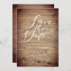 Diese rustikale Save the Date-Karte verfügt über ein elegantes Drehbuch Save the Date über Ihrem Set in eleganter Typografie auf einem rustikalen Holzpaneelhintergrund. Entwickelt von Thisisnotme©
