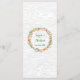 Die hellgelbe Holzkornstruktur verleiht dieser Hochzeitskarte oder besondere Anlass-Rackkarte ein rustikales Ambiente in einem blassfarbenen Ton. Ein grafischer Blumenkranz umschließt den Titel der Menükarte. Ein Strauß Blume dient als Akzent unterhalb der Menüoptionen. Vielseitig genug für jeden Anlass. Der Kranz wiederholt sich auf der Rückseite, um die Namen des Paares zusammen mit dem Veranstaltungsdatum zu halten. Erhältlich in alternativen Farben mit passenden Produkten.