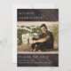 Faire-part de graduation photo en bois foncé avec texte blanc imprimé. Ajoutez la photo du fils à la partie centrale de cette carte à plat. Son nom est imprimé en gros caractères en haut avec "Classe de [année]" ci-dessous. Incluez également le nom de son lycée (ou collège) et l'endroit où il va aller à l'école à l'automne.