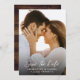 Rustic mariage photo enregistrer la carte de date. La carte revient à un arrière - plan en bois de grange. Ajoutez facilement votre propre photo et personnalisez avec des détails mariages.
