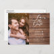 Rustic Wood Script-Foto Hochzeit speichern Sie das Postkarte
