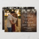 Rustic Wood String Lights Photo QR code Wedding Einladung