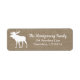 Woodland, rustic, and chic address labels featuring a white moose silhouette encircling your family's monogram letter in white. The background is a faux burlap print.