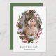 D'élégants cartes de fin de année botaniques arborent votre photo préférée entourée d'une couronne ovale rustique de feuillage vert tendre et de marron et de fleurs rousses. Personnalisez avec votre salutation personnalisée et les noms en-dessous ; avec "Joyeux Noël".