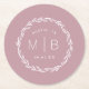 Rustic Wreath Wedge Monogram | Mauve Runder Pappuntersetzer