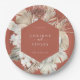 Schöne rustikale, boho-chic getrocknete Palmfronten, Rose und orchiden geometrischen Rahmen auf rostfarbenem Hintergrund, personalisierte Teller aus Papier. Entworfen, um unsere Bohemische Oasis Wedding Collection zu ergänzen.