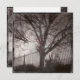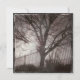 Rustikal gestörte Baumschmiede Silhouette Grunge Design bei Sonnenuntergang in einer tiefen lila Dunstfarbe mit einem Zaun im Hintergrund. Es hat eine Silhouette mit Stränden. Ein großer Herbst oder Herbst Design.