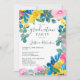 Soirée de remise de diplômes d'été rose rustique, classe de 2023 avec bleu peint, tournesols de champs sauvages jaunes, roses roses, eucalyptus vert sauge sur rose modifiable.