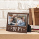 Das hübsche Holzschild zum Vatertag, Geburtstag oder Großelterntag zeigt zwei Fotos nebeneinander auf einem rustikalen Hintergrund mit "Poppy" darunter.
