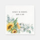 Rustikale und elegante Aquarellsonnenblume und Eukalyptus auf weißen Papierservietten.