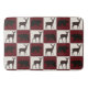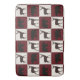 Dieses Quilt besticht durch ein charmantes und rustikales Kabinendesign. Es zeichnet sich durch ein spielerisches Schachbrettmuster aus abwechselnd dunkelroten und cremefarbenen Quadraten aus. Jeder Platz beherbergt eine Silhouette eines Hirsches oder eines Bären und schafft so eine skurrile Waldlandschaft. Die Tiere werden in einem schlichten, aber eleganten Stil der Silhouette dargestellt, der die rustikale Ästhetik noch verstärkt. Die dunkelrote und cremefarbene Farbpalette verleiht dem Ganzen ein Gefühl der Natur und schafft ein warmes und einladendes Ambiente.
