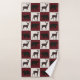 Dieses Quilt besticht durch ein charmantes und rustikales Kabinendesign. Es zeichnet sich durch ein spielerisches Schachbrettmuster aus abwechselnd dunkelroten und cremefarbenen Quadraten aus. Jeder Platz beherbergt eine Silhouette eines Hirsches oder eines Bären und schafft so eine skurrile Waldlandschaft. Die Tiere werden in einem schlichten, aber eleganten Stil der Silhouette dargestellt, der die rustikale Ästhetik noch verstärkt. Die dunkelrote und cremefarbene Farbpalette verleiht dem Ganzen ein Gefühl der Natur und schafft ein warmes und einladendes Ambiente.