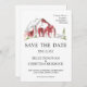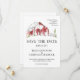 Diese Save the Date Karte zeichnet sich durch ein wunderschönes, rotes Aquarellbild aus, das sich perfekt für eine rustikale oder Vintage Hochzeit eignet.