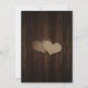 Rustikale Hochzeitseinladung mit Saitenleuchten auf einem Stallholzhintergrund auf der Vorderseite und zwei Höhlenherzen auf der Rückseite. Perfektes Kartendesign für die Einladung Ihrer Gäste zu einer rustikalen Hochzeitsfeier zum Thema Land. Matching-Elemente verfügbar.