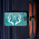 Trendy und rustikales Grün verrostete Metalldruck-Gepäckumbau mit den weißen Rotwildgeweihen und Ihrem personalisierten Namen.